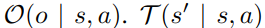 O(o | s, a) : 각 환경과 액션이 주어졌을 때의 관측을 나타냄